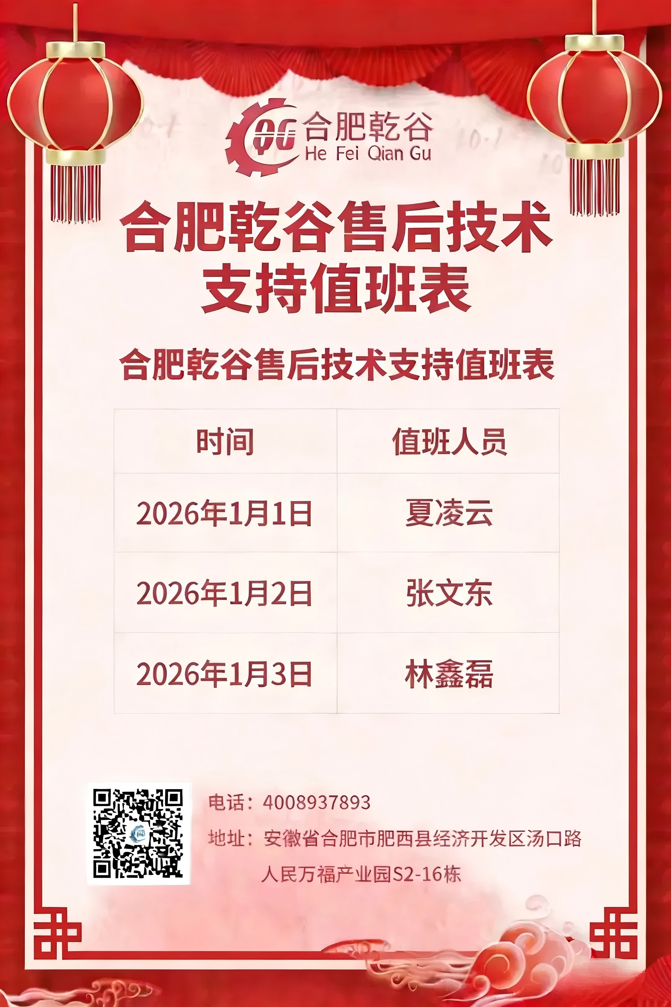 感恩2025 一路同行,喜迎 2026 元旦新程!感謝您長期以來對乾谷的信賴與支持,結合公司實際情況,現將元旦放假及技術售后值班保障安排通知如下: